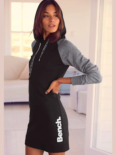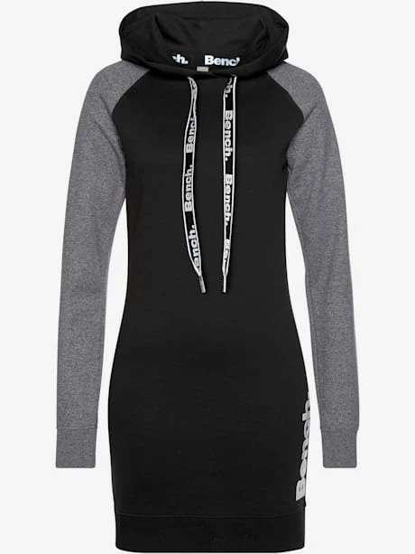 Robe en matière sweat Bench. Capuche avec cordon de serrage imprimé et manches raglan contrastées. 60% coton (Cotton made in Africa), 40% polyester.