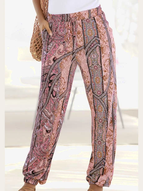 Hose von Buffalo in legerer Form mit Gummizügen am Beinabschluss. Bund mit Gummizug. Seitliche Eingrifftaschen, Innenbeinlänge ca. 76 cm. Aus Jerseyqualität.
