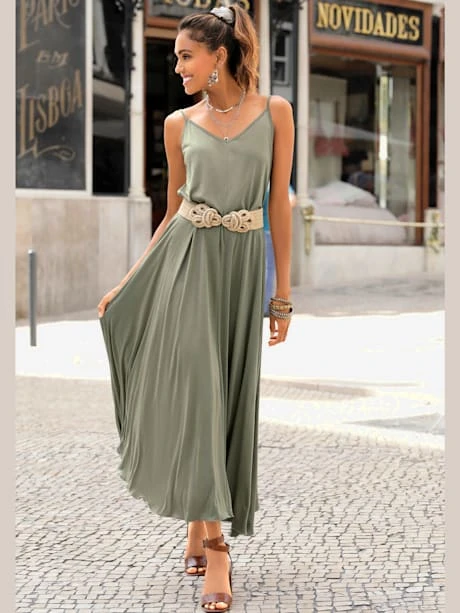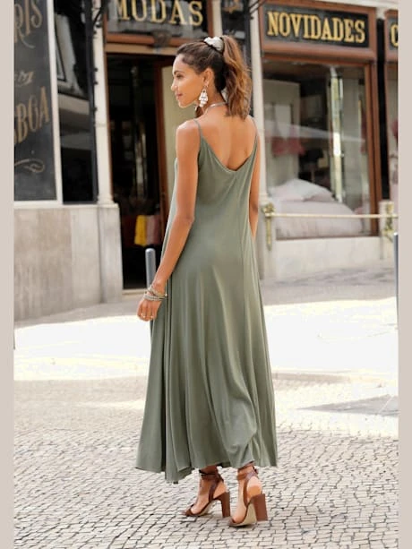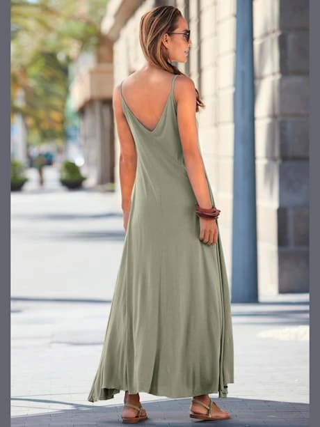 Robe Buffalo, coupe cintrée avec bretelles spaghetti. Partie jupe très évasée. Longueur cheville, env. 132 cm. 100% viscose.