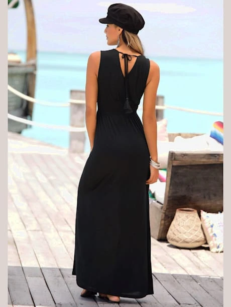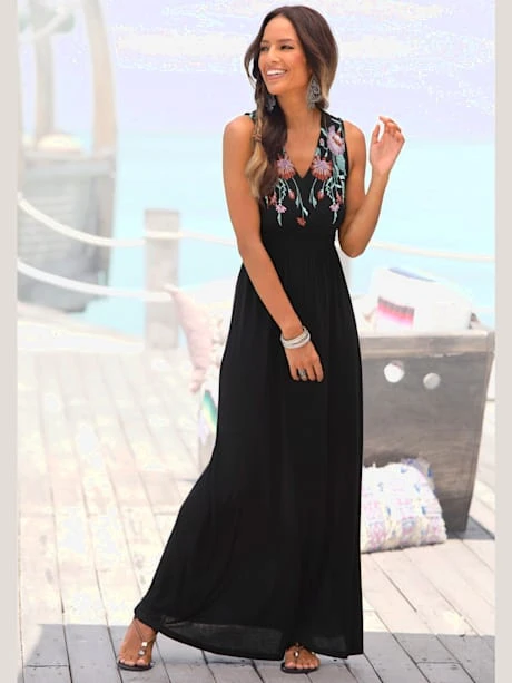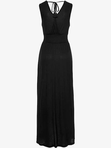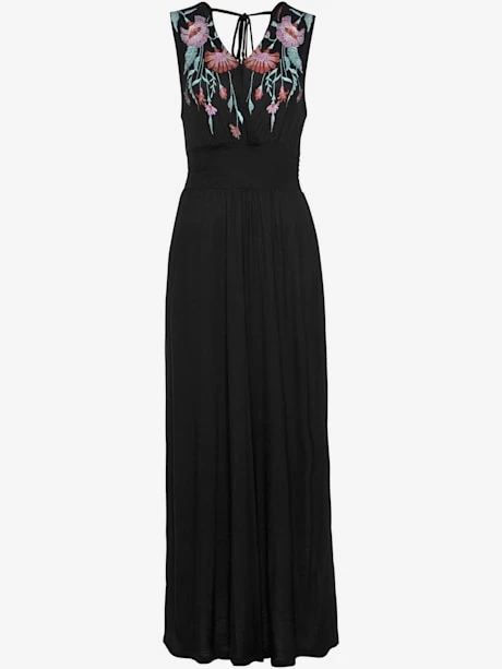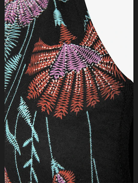 Encolure en V chevauchante, liens à nouer au dos. Imprimé à l’aspect brodé sur la poitrine. Longueur env. 139 cm. 100% viscose.