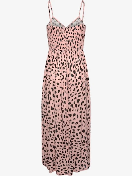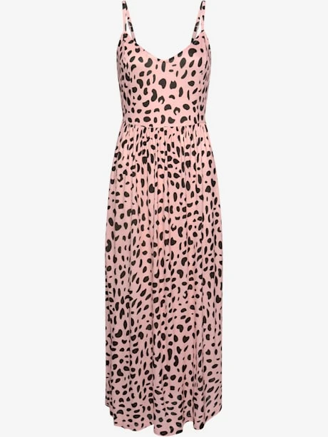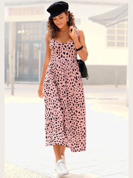 Robe midi Buffalo à imprimé animal. Effet de couleur différent pour chaque pièce. Bretelles spaghetti réglables. Taille élastiquée. Longueur jupe env. 82 cm. 100% viscose.