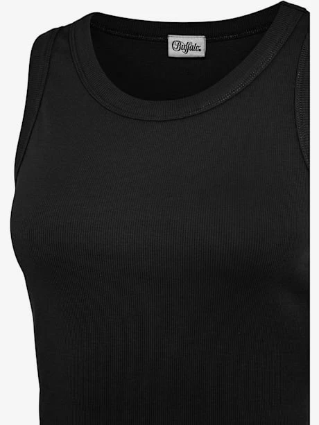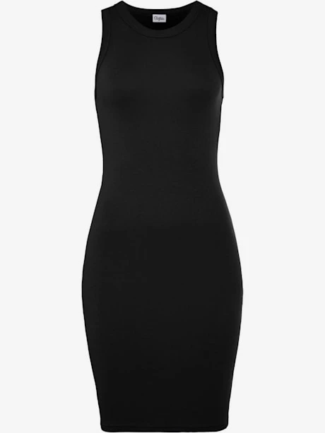 Minirobe moulante Buffalo. Design sobre et uni avec encolure ronde. Convient à de nombreux styles différents. Qualité côtelée extensible agréable à porter.