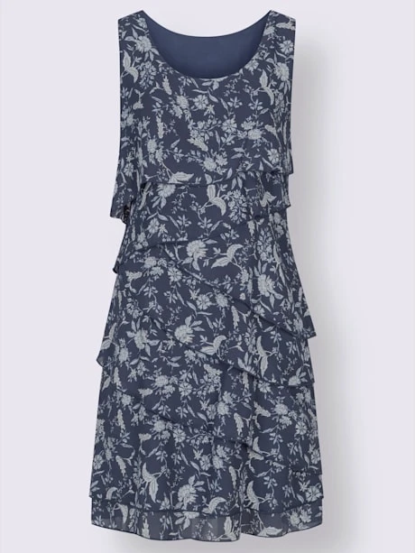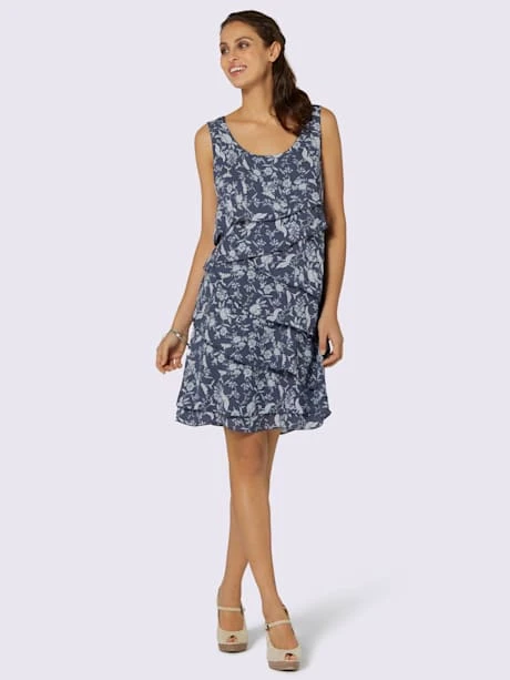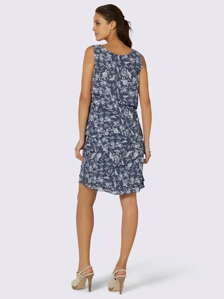 Idéale en toute occasion, cette robe à motif floral dissimule habilement les petites rondeurs avec sa coupe légèrement évasée et son effet superposé. Glissière discrète sur le côté.