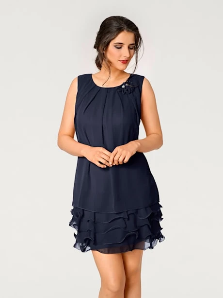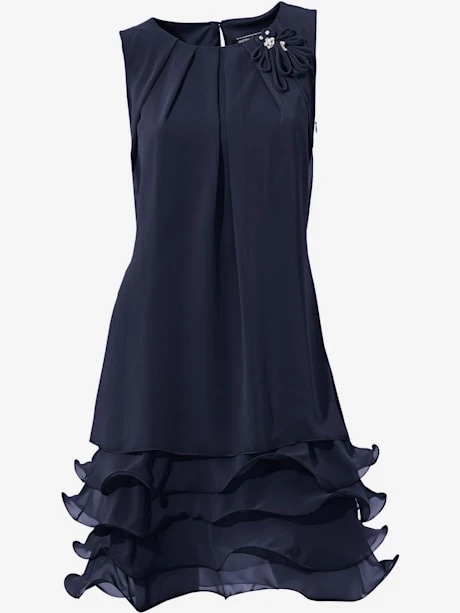 Robe de cocktail en qualité crêpe légère et fluide. Coupe avantageuse. Pour les occasions festives. Applications tendance.