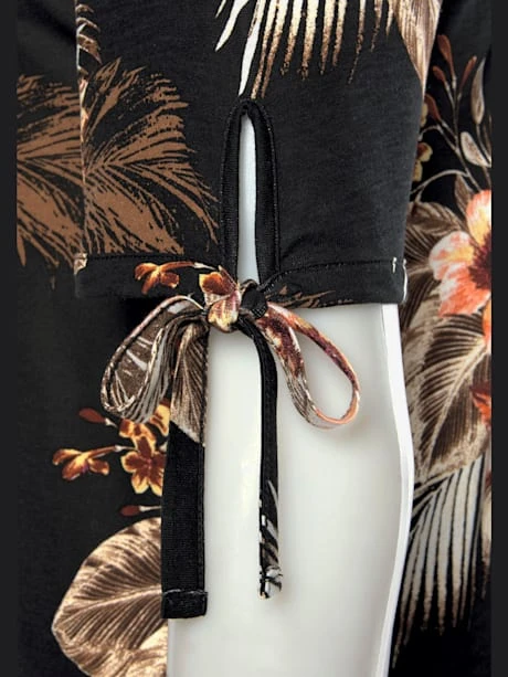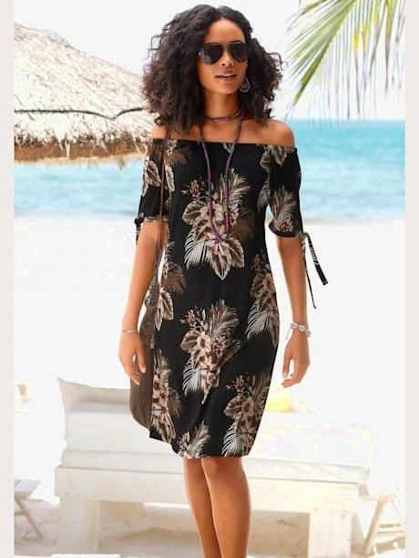 Encolure Carmen extensible. Manches courtes avec rubans à nouer. Coupe décontractée. Effet de couleur différent pour chaque pièce ! Longueur dos env. 78 cm. Qualité agréable 100% viscose.