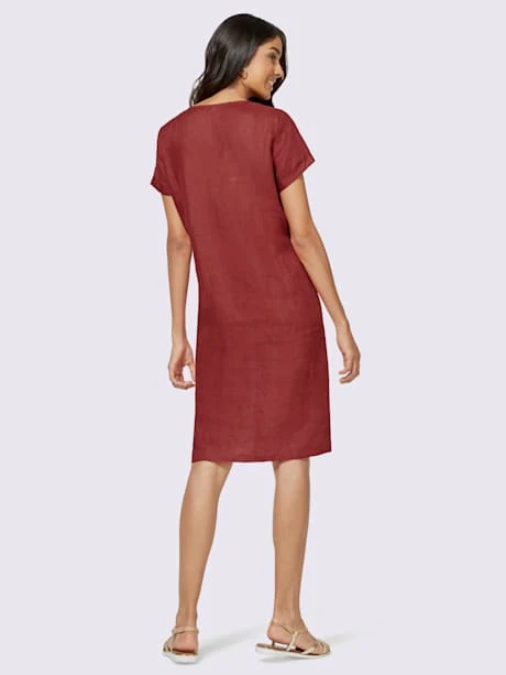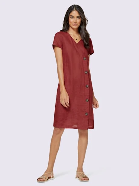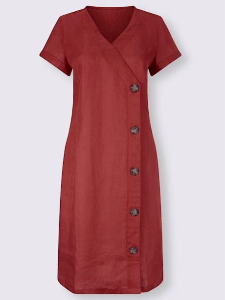 Robe parfaite par temps chaud. Coupe décontractée avec patte de boutonnage asymétrique, qualité lin pur agréablement rafraîchissante, idéale en ville, au travail ou en vacances.