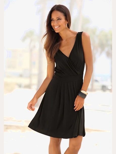 Robe en jersey avec encolure cache-cœur, Robe d’été en viscose, Robe portefeuille à larges bretelles, Fronces affinantes, Partie jupe à la largeur évasée