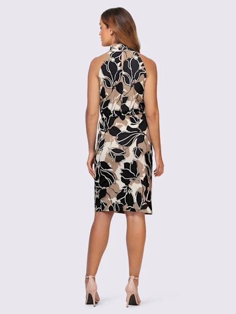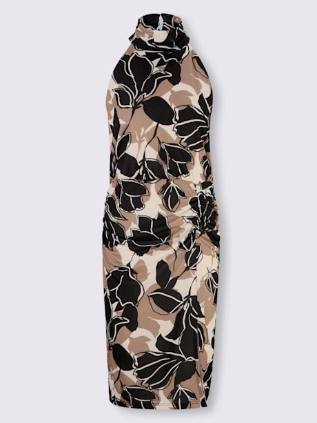 Robe en jersey en qualité fluide et coupe flatteuse. Sans manches. Col montant tendance et fronces affinantes. Fente devant.
