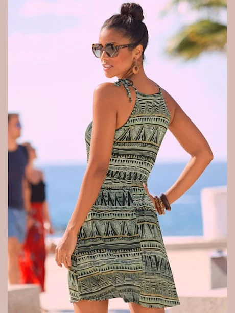 Encolure avec découpes tendance, Bretelles à nouer aux épaules, Taille élastiquée, Imprimé, effet de couleur différent pour chaque pièce, Qualité jersey douce en viscose