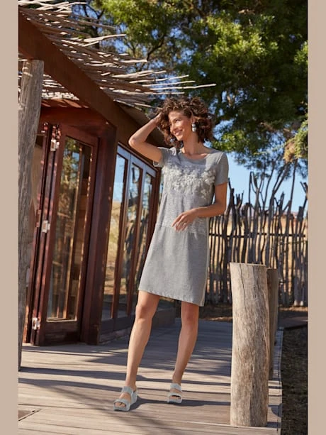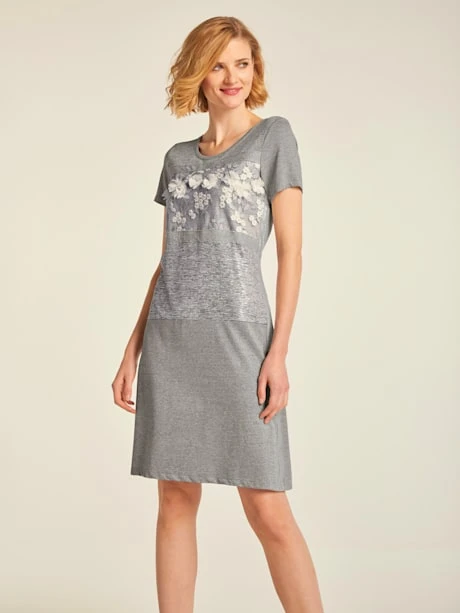 Robe en jersey à la brillance raffinée. Mélange de qualité. Forme légèrement évasée. Manches courtes