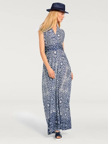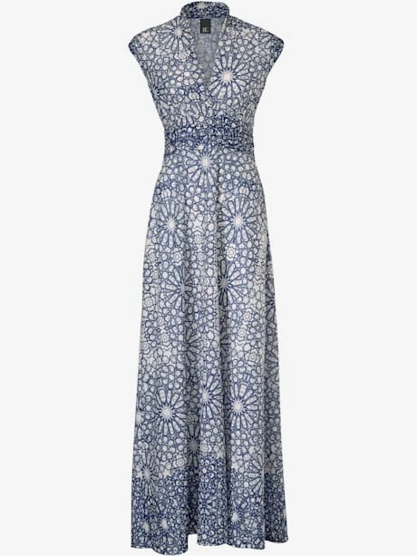 Robe longue en jersey tendance. Encolure en V, glissière et manches courtes. Qualité très douce.
