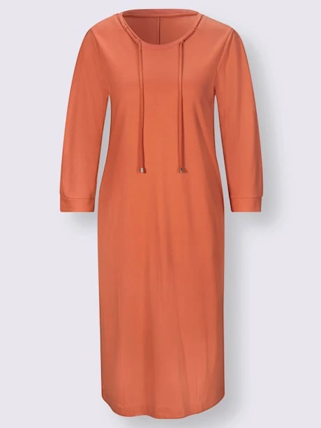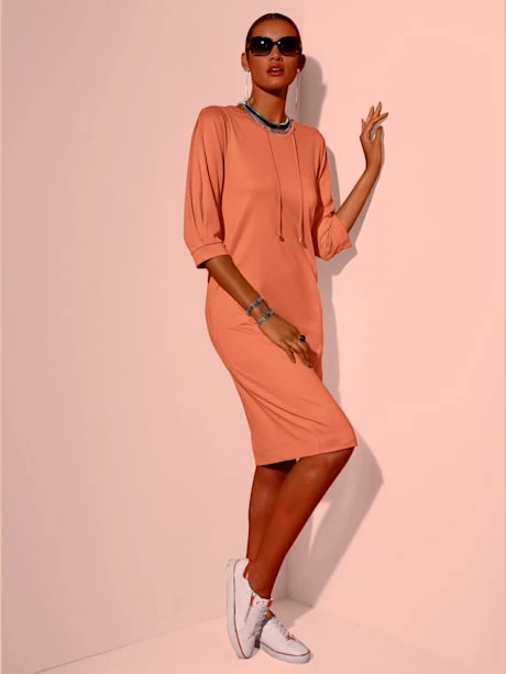Compliments garantis avec cette robe en jersey agréable à porter. Coupe tendance avec liens à nouer à l’encolure, larges manches ballon tendance et 2 poches cousues très pratiques. Qualité viscose supérieure.
