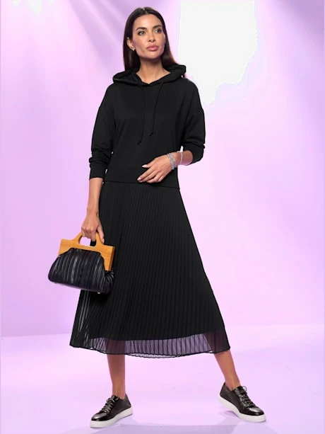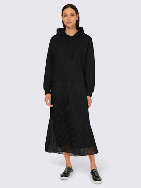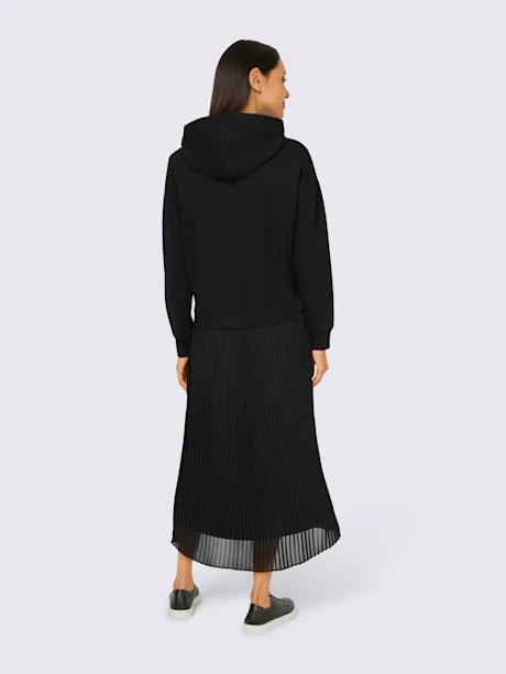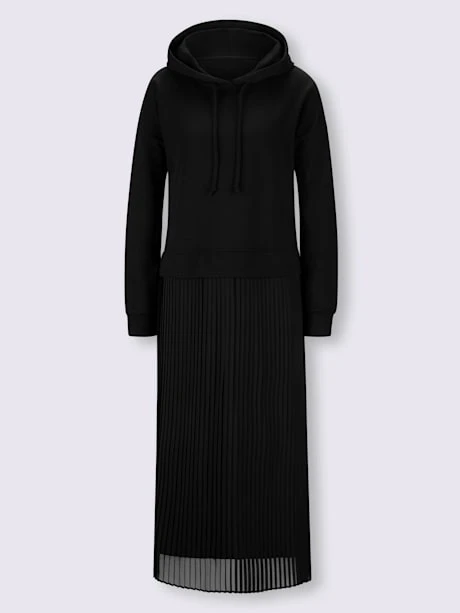 Robe en jersey tendance, aspect 2 en 1 et qualité sweatshirt agréable à porter. Sweatshirt à capuche et lien à nouer. Jupe plissée, doublure opaque. Manches longues à bords-côtes. Soutenez l’initiative « Cotton made in Africa ».