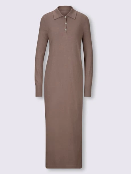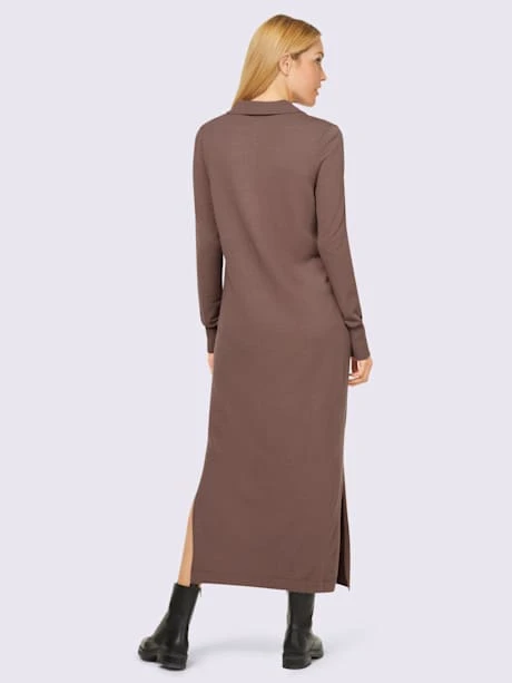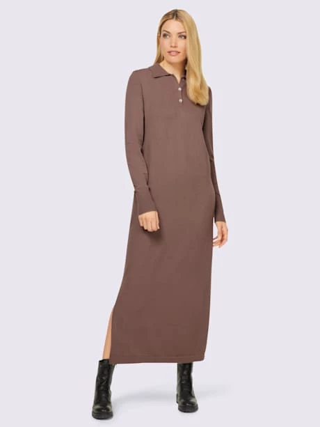 Robe en tricot sportive ! Tricot fin et agréable à porter. Col polo sportif. Encolure en V, patte de boutonnage courte. Fentes latérales. Manches longues à bords-côtes.