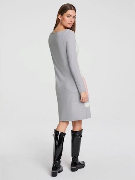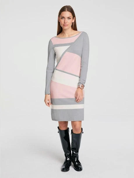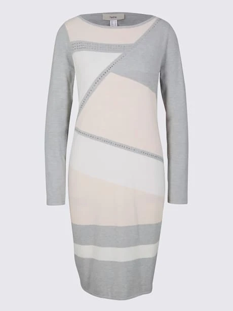 Robe en tricot à l’aspect patchwork. Tricot fin doux et agréable, part importante de viscose. Encolure ronde et manches longues.