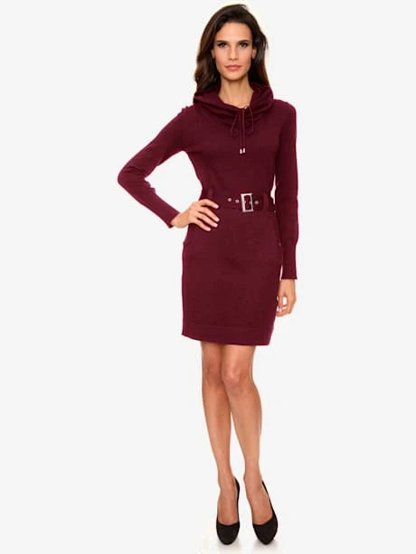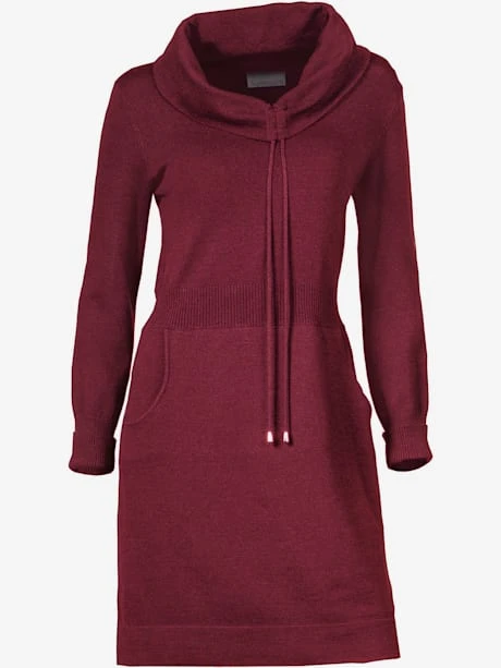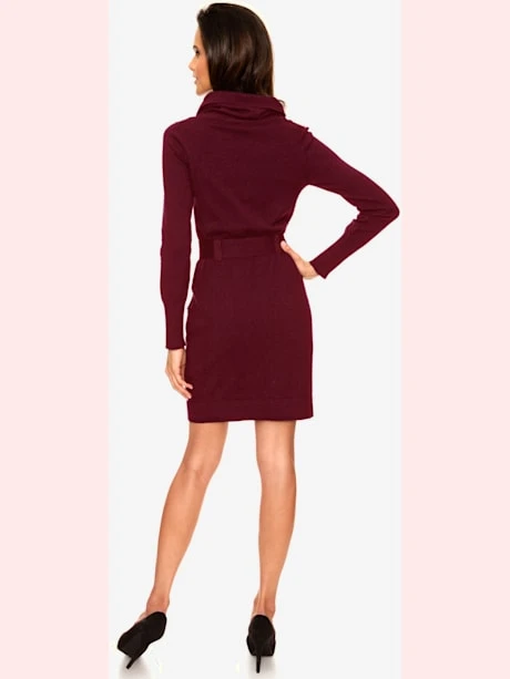 Robe sportive en tricot fin doux. Large col roulé avec lien à nouer. Fines côtes aux manches et à la taille. Passants, ceinture en tricot incluse.
