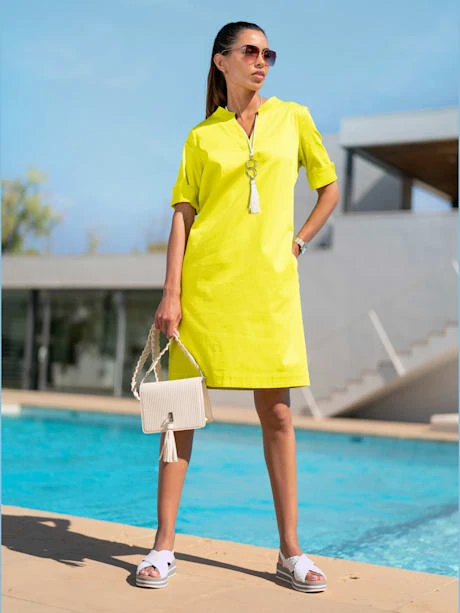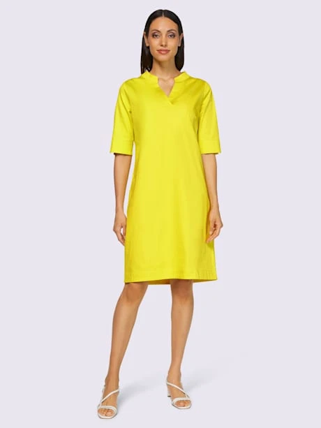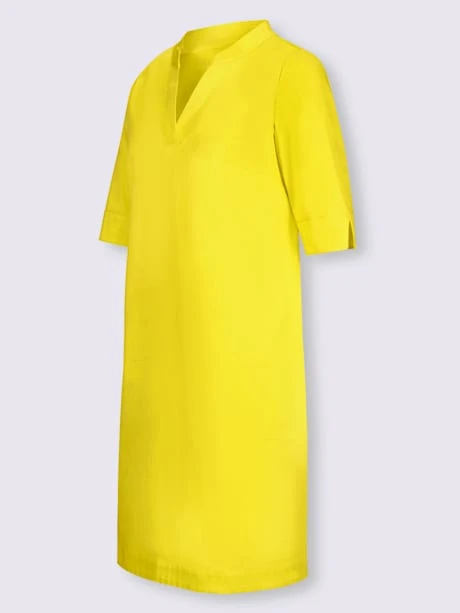 Robe sportive et décontractée. Encolure ronde originale avec petit V, manches courtes plus longues avec petite fente et poches cousues latérales. Sans fermeture. Soutenez l’initiative « Cotton made in Africa ».