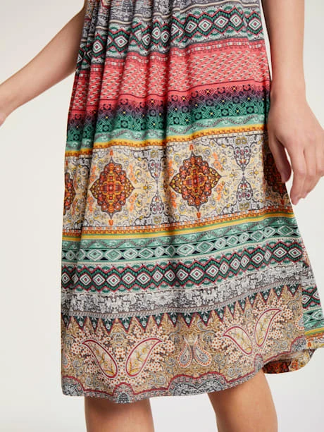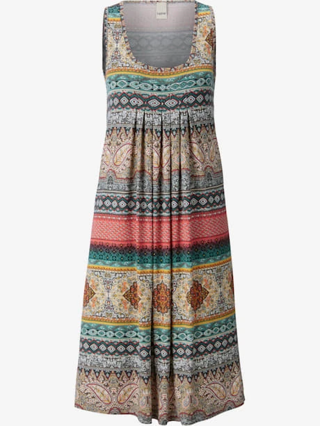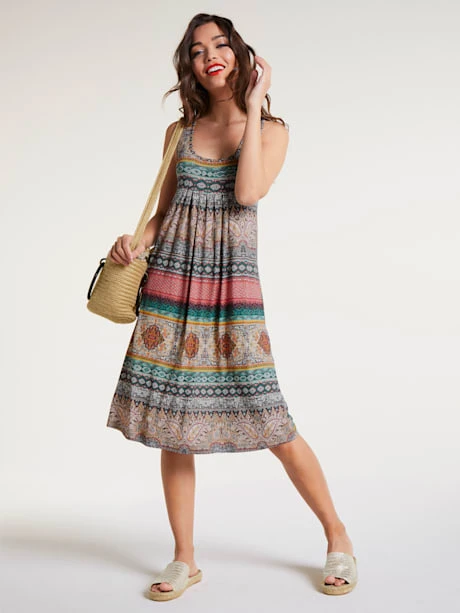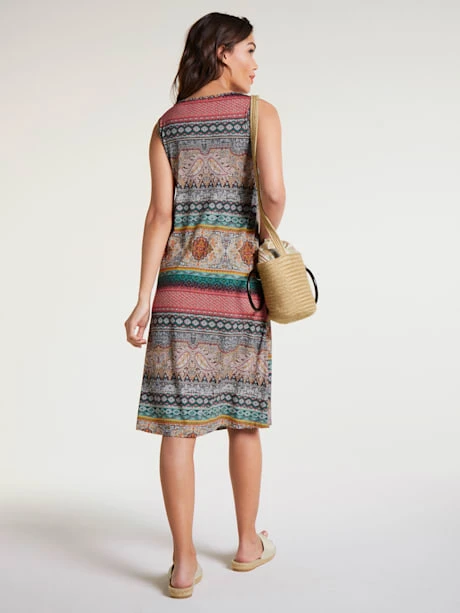 Robe à l’imprimé tendance. Coupe flatteuse, sans manches, encolure ronde. Matière agréable à porter.