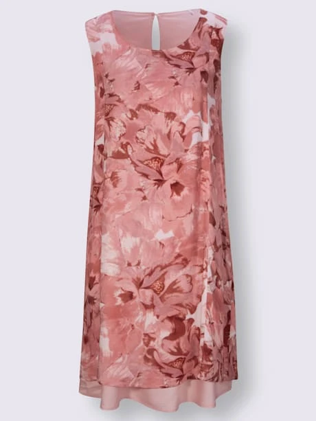 Ultra-lĂ©ger pour les journĂ©es d’Ă©té ! Robe sans manches en modal doux et aux reflets mats. ImprimĂ© floral, effet superposĂ© et coupe lĂ©gèrement Ă©vasĂ©e. Fente et attache Brandebourg dans le cou.