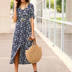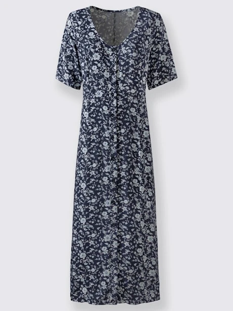 Vous allez adorer cette robe d’été entièrement imprimée de fleurs ! Coupe légèrement évasée très avantageuse. Couture médiane devant et dos, couture à la taille pour une jolie coupe. Encolure en V profond et patte boutonnée continue. Matière fluide.