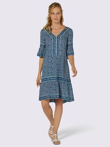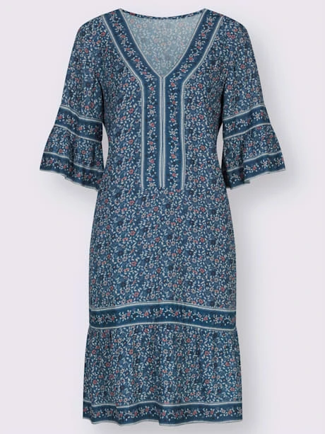 Cette robe possède de nombreux talents – elle est jolie, classe et affine habilement la silhouette ! Facile à enfiler avec encolure en V et ruban décoratif contrasté. Les fronces au dos et sur les manches trompette 3/4 dissimulent habilement les petites rondeurs.