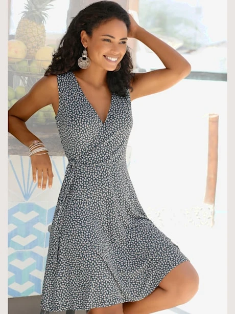 Robe de plage S.Oliver Beachwear. Imprimée, chaque pièce est unique. Haut effet cache-cœur. Jupe courte. Longueur env. xx cm. 95% viscose, 5% élasthanne.