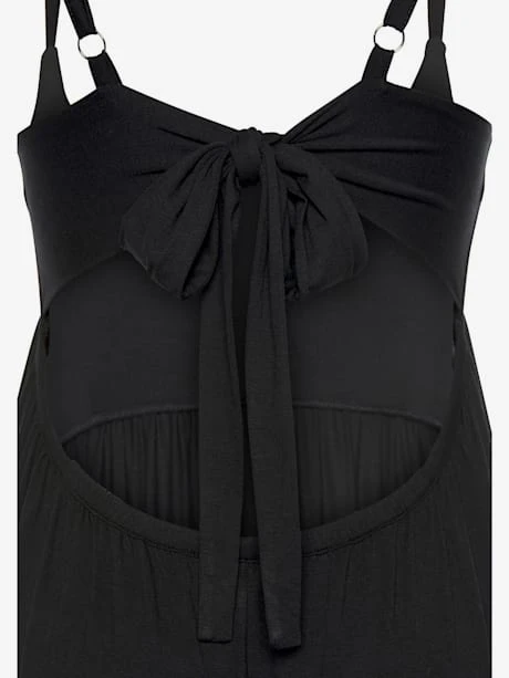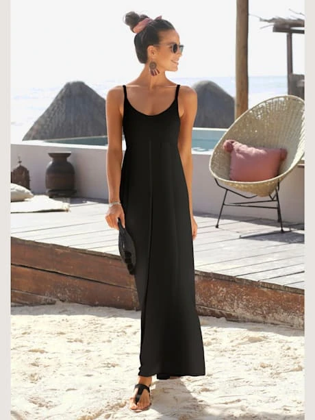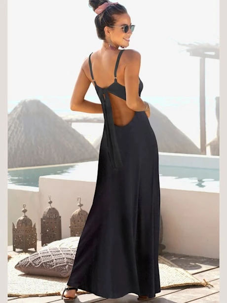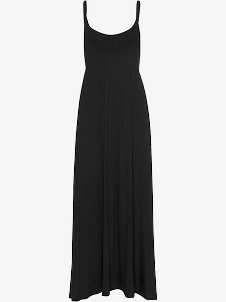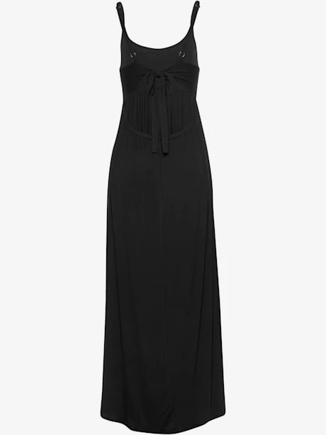 Robe longue avec liens à nouer au dos. Couture sous poitrine. Longueur jupe env. 104 cm. 95% viscose, 5% élasthanne.